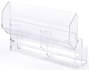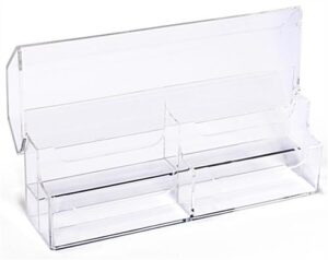 2-Tier Plastic Business Card Holder with Lid for Desktop Use, Double Wide – Clear