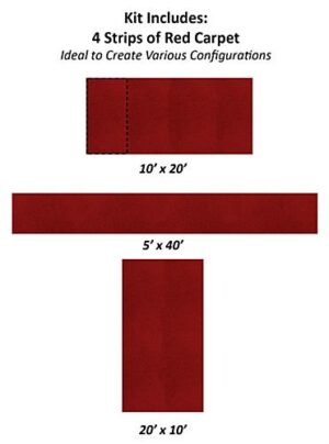 20’ Red Carpet Roll in Set of 4 Easy-to-Install 5′ x 10′ Strips