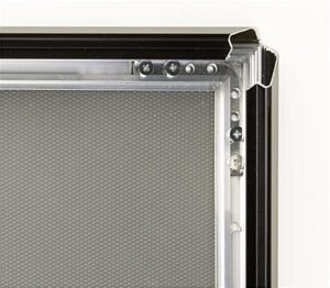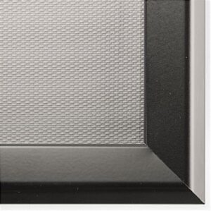 This black poster frame has 1-1/4″ wide edges that stylishly accent 20″ x 30″ prints. An affordable price, user-friendly design, and anodized aluminum construction make these units a great value. The black poster frame, also called a picture holder, is easy to load with a print, as all four sides of the framing snap open. Prints front-load into this display, so there is no need to dismount it from the wall when updating advertisements. Customers can hang this black poster frame in landscape or portrait orientation. There are pre-drilled holes under the metal framing to make the mounting process simple. Additionally, each 20 x 30 black poster frame comes with a hardware kit that includes four anchors and four screws. Customers will need a drill and screwdriver to mount these displays on a wall. However, no additional hardware is required.