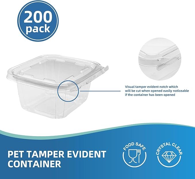 - Securely: These Clear Clamshell Food Containers feature a Tamper Evident Container,which will be cut when opened easily noticeableif the container has been opened