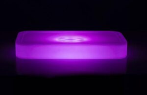 This multicolored rectangular LED light up serving tray provides hours of dazzling illumination poolside, bar side, or at your next special gathering. Think of the fun you can have when you use this glowing display as a bottle holder. Ideal for all entertainment establishments, this light up serving tray is lightweight, easy to carry, and has a weight capacity of 44 pounds. Enhance your bar, nightclub, or event with this fun LED illuminated bottle holder, which also doubles as a snack display. A rechargeable battery allows for up to 10 hours of consistent ambient glow. This 20”w x 12”d rectangular light up serving tray is a modern and futuristic way to entertain your guests.