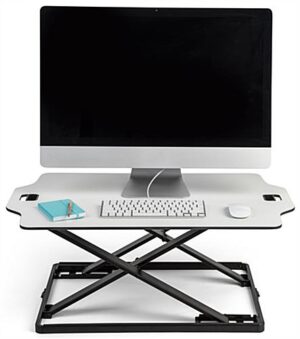 This foldable desktop riser is a great solution to convert an existing workstation to allow you to transition from a seated position to standing throughout the day. Research has shown that an excessive amount of sedentary behavior can lead to “sitting disease.” This white desktop riser features adjustable height and has 12 settings to choose from so that each employee can achieve a comfortable standing position. Using these tables to convert existing workstations in your office may provide employees with several potential health benefits such as reduced risk of sitting disease, pain relief, increased blood flow and an improved posture. Constructed of a steel frame, these units are durable and meant to last.