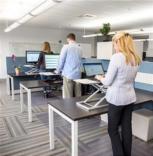 Your employees will appreciate the potential health benefits with the addition of a desktop riser with adjustable height.