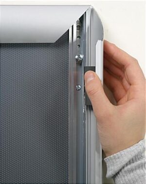 This new 22″ x 28″ wall frame is built with a thicker, more durable profile. The satin aluminum sides are 45mm (1.75″) thick, giving the sign holder an upscale appearance. Wall frames such as this snap open wall frame, allow you to load and unload your sign or picture with ease. Simply “snap” the sides up, place your poster beneath the protective lens, and snap shut. We sell this snap wall frame for use in nearly any environment, including retail stores, airports, supermarkets, and banks.