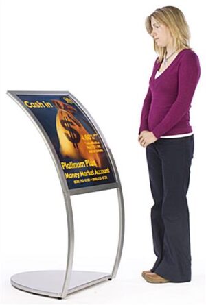 These poster displays, sign frames are very simple to use. Simply sandwich your graphic between the sturdy plastic backer and protective clear lens and slide into the frames’ channel. The backer ensures your poster remains flat within the frames while the non-glare plastic lens protects your poster. These sign frames are crafted from anodized aluminum with a satin silver finish. Frames hold a standard 22″ x 28″ graphic, with about 1/4″ covered on all four sides. A stylish, half-elliptical base adds style and stability to the sign frames. Sign frames ship unassembled to save money on shipping costs. Assembly instructions and hardware are included for simple, 1-person assembly.