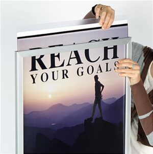 These sign holders are a simple, stylish and affordable marketing and advertising solution. No matter what your business or organization is trying to advertise, it wil be clearly promoted in this large, double-sided 22″ x 28″ anodized aluminum frame. The sign holders, also known as poster stands, work perfectly in retail stores, banks, tourist attractions, and community centers. They are also ideal for use in indoor retail entryways or near bestsellers! The sleek, stylish, and prominent design make these store fixtures virtually impossible for a customer or patron to pass by without a glance.