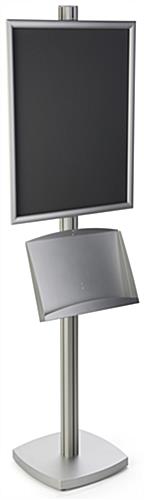 Promote various advertisements with this 22×28 snap metal frame with literature tray that is perfect for trade shows or other events. Each aluminum magazine holder features two pockets that can accommodate standard 8.5” x 11” reading materials. The flip open frame provides a fast and sleek way to change out graphics without the need for tools. The square base provides a stable stand for the 6’ aluminum pole and magazine holder, even in highly trafficked areas. For increased noticeability you can also adjust the height of the panel and periodical pockets. Place the frame in entrance ways, lobby areas, and foyers to welcome customers with fun or pertinent information.
