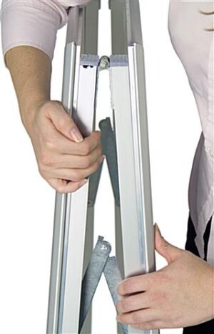 • Each side of frame can hold a 22″ x 28″ graphic.