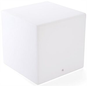 Spice up your bar, lounge, or event with a modern style using this LED cube table. Each piece of furniture has a rechargeable lithium ion battery that can last between 10 and 12 hours on one charge. The LED table comes with a remote control that can change colors, flash, and dim at the touch of a button. Plastic construction paired with rubber plugs in each charging port make each furniture piece water resistant for outdoor use while the frosted white finish maintains a touch of modern style. LED tables such as this can make your event booth pop out from the rest with eye catching light illumination. The 23.5” surface makes this water resistant fixture perfect for customers to share a drink over at your restaurant bar.