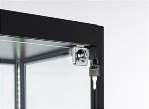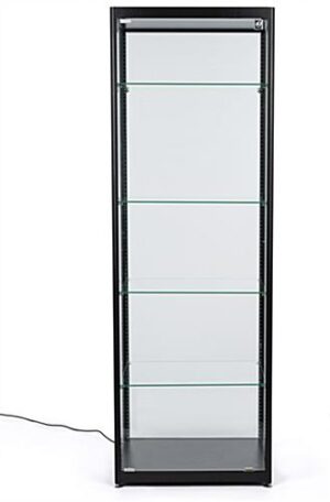 Black Glass Curio Display Cabinet with Aluminum Framing and Lockable Door