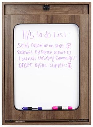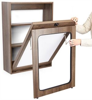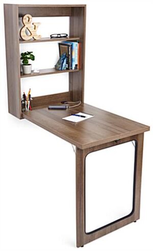23.6″ w × 59 h Wall Mounted Folding Desk w/ Whiteboard & Shelves – Dark Brown