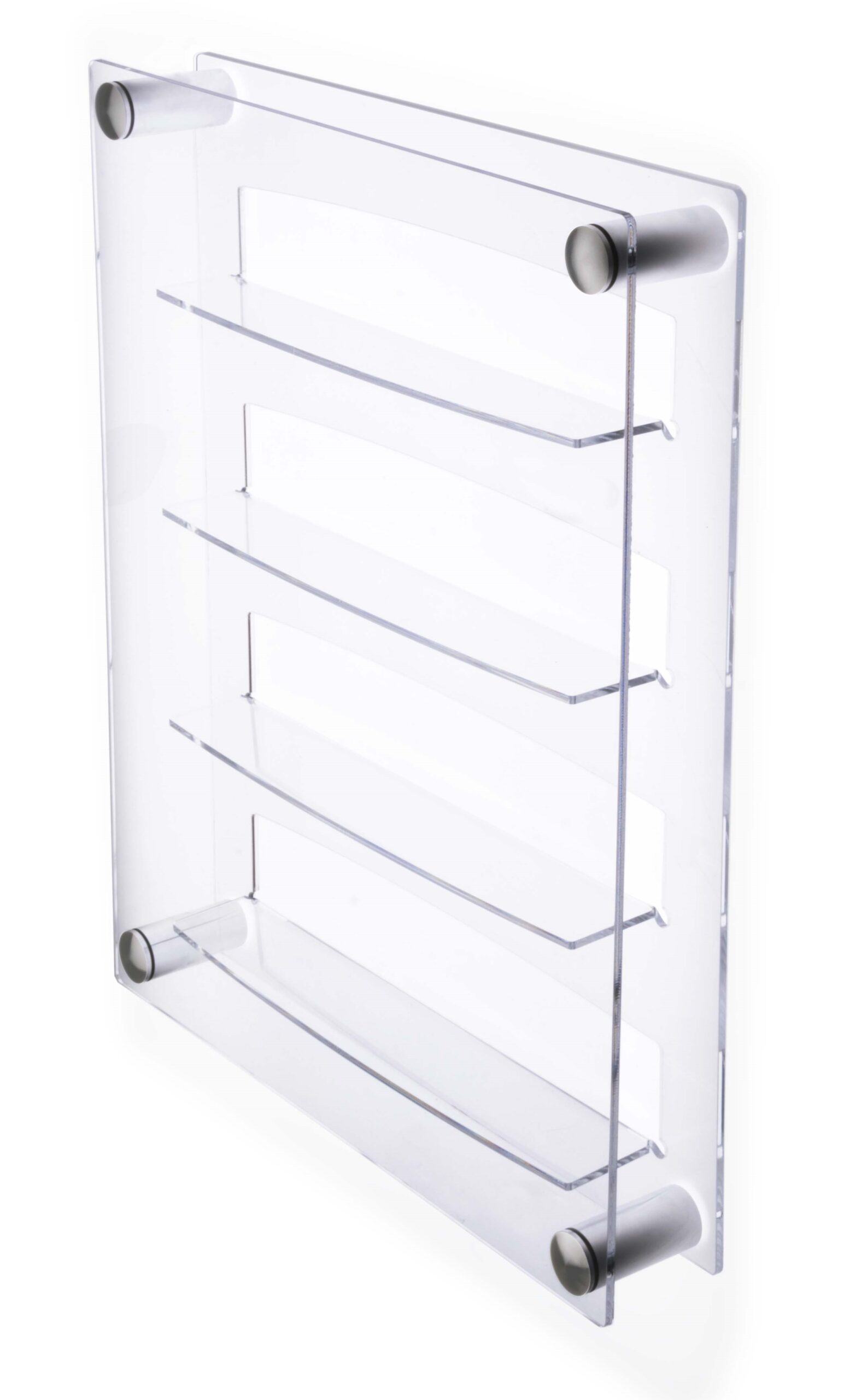 The shot glass shelves are built and supported with silver standoffs giving the cabinet a modern look. The display shelf has 4 rows which support six shooters each. The acrylic shelves have a tall design which gives you a choice of what size glassware you would like to showcase. The display shelf is also perfect for displaying other collectibles. The shelves are easy to mount using four screws with wall anchors for a secure cabinet. Another great feature that many customers use is up-lighting to really brighten up the acrylic shooter display!