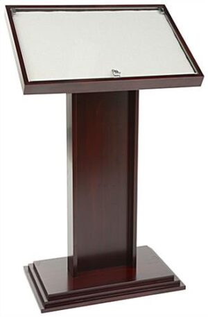 This directory display stand measures 50.25 inches tall and presents information at a slight angle for easy viewing. The floor-standing bulletin board offers a 24 x 18 fabric interior to which various documents, including maps and calendars, may be pinned. In fact, the large-size padded fabric bulletin area can hold up to (4) horizontal 11 x 8.5 sheets of paper! The same area can also accommodate (2) 11 x 17 side-by-side sheets. This directory display stand has a locking, hinged glass door for easy access to the interior presentation space. In-between uses, keep the door locked to prevent unauthorized users from accessing the announcements stored within.