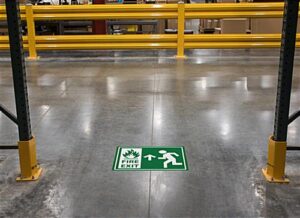 Non-Slip Stick on Fire Exit Safety Sign with a Straight Arrow for Indoor or Outdoor Use