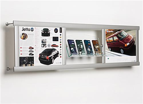These wall-mounted green acrylic leaflet holders have (2) lenses. You can use these lenses to protect graphics and make sure they remain clean. Pamphlet racks, leaflet holders can fit (2) graphics measuring 24″ x 18″. These leaflet holders, also known as brochure holders, are made from brushed aluminum. Brushed aluminum is strong aluminum that has a silver finish, allowing it to fit in seamlessly with any environment. These leaflet holders are easily recognizable on any wall, drawing your customers in to the display!