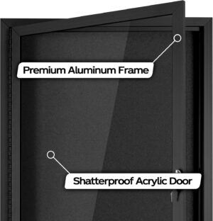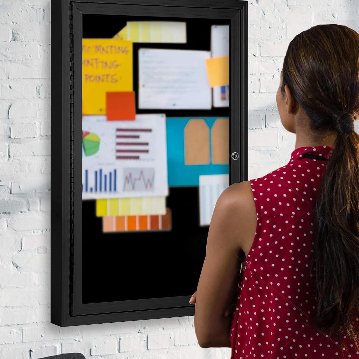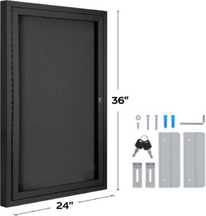 24 X 36 Enclosed Bulletin Board with Locking Door – Black Weatherproof, Lockable Fabric Noticeboard with Aluminum Frame, Wall Display Case with Swing-Open Door