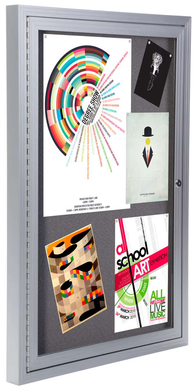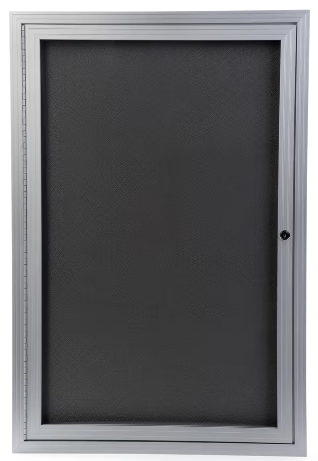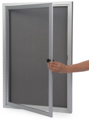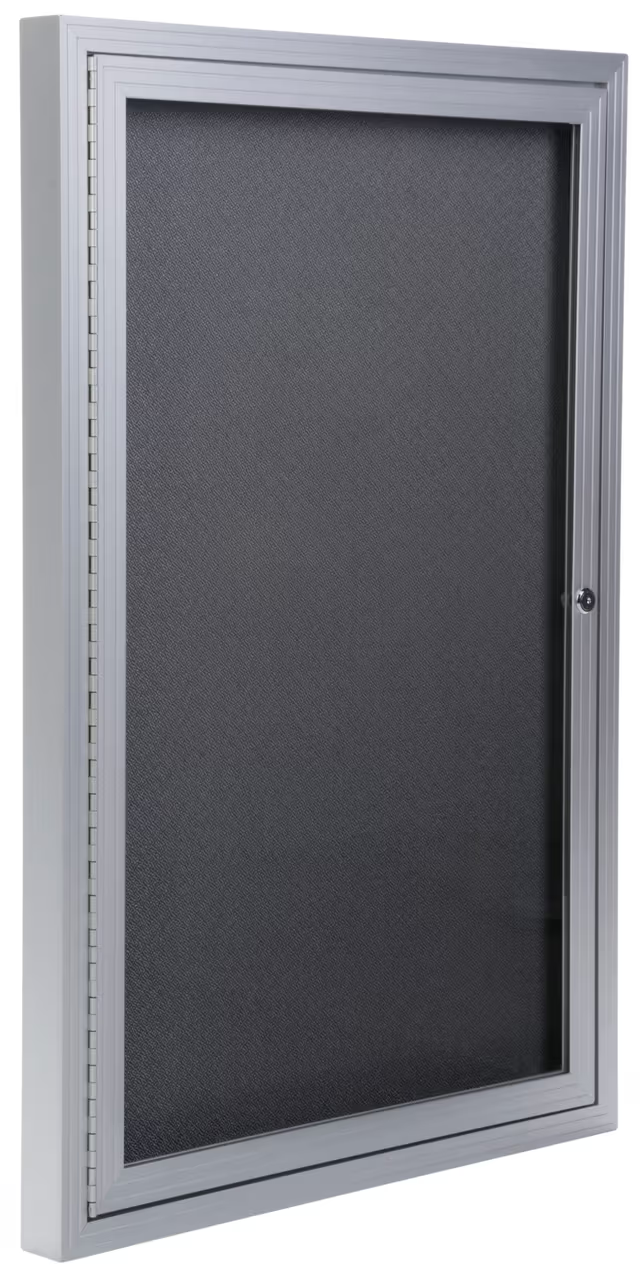 Built with a durable aluminum frame and outfitted with wall mounting hardware, this 24″ x 36″ fabric bulletin board is ideal for any environment. The silver finish complements your existing setting as well as the 2’ x 3’ gray cloth material inside the case. Quickly swing open the aluminum frame bulletin board to insert photos, documents, flyers and more! Each unit comes with a lock and set of keys to keep items on display safe from theft or tampering. Place a cork display on the wall of schools, offices, and entrance ways to showcase information to passersby with ease. Keep your documents and memorabilia safe with a modern and stylish fixture such as this bulletin board.