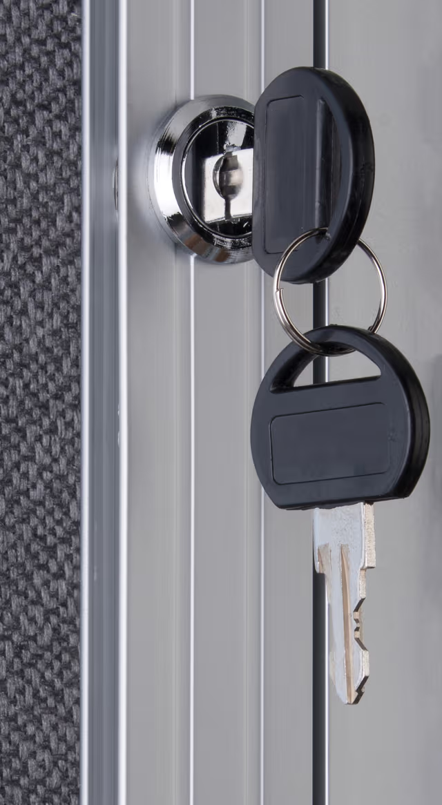 24 x 36 Enclosed Bulletin Board with Locking Door – Silver with Gray Fabric