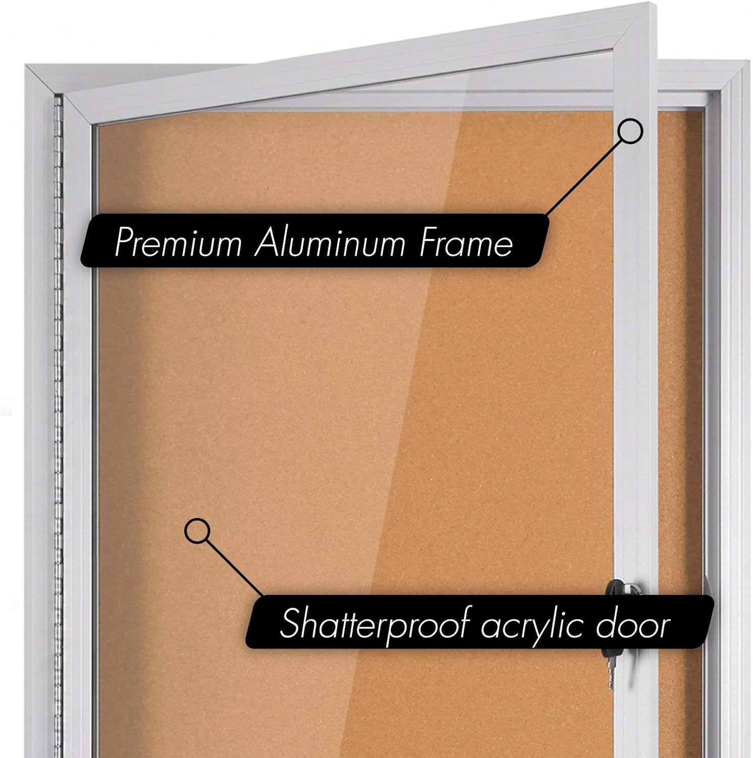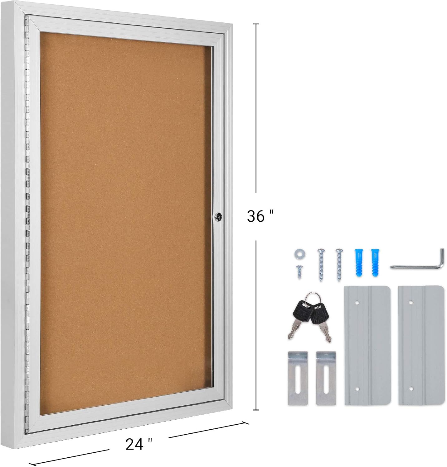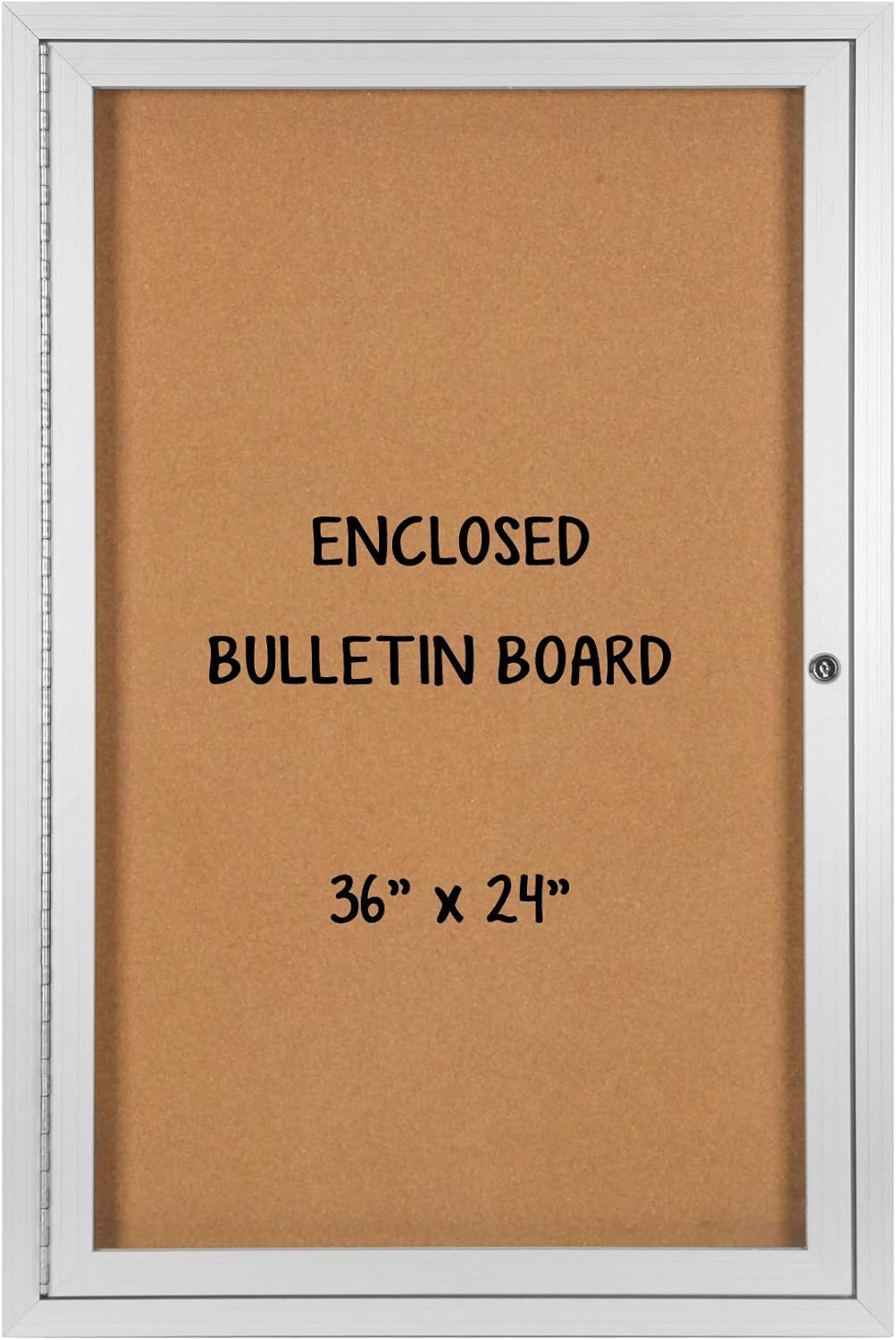 24 X 36 Enclosed Cork Board with Locking Door – Silver Weatherproof, Wall Display Case with Swing-Open Door
