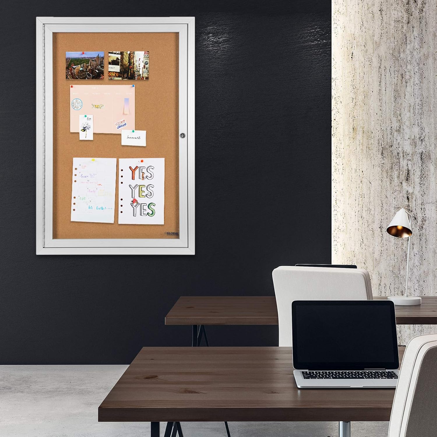 • Large cork interior for posting messages, memos, and posters.