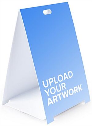 This printed folding a frame sign with custom graphics is an easy signage solution that can be personalized to effectively communicate your establishment’s latest advertising, promotions, or important notices. Constructed from durable weatherproof polypropylene material, our portable, double-sided sidewalk display for outdoor or indoor use can stand up to tough weather conditions as well as areas of high traffic. Each printed folding a frame sign features individual printing areas on the front and back side of each unit to maximize advertising and marketing opportunities. This portable triangle-shaped display packs flat so you can transport your foldable marketing tool from outside to inside your location with incredible ease. Quickly assemble and provide guests with eye-catching signage, thanks to this unit’s simple, no-tools-required build. Use this printed folding a frame sign with personalized graphics to bring attention to your sidewalk or curbside and make your message visible for all passersby to see.