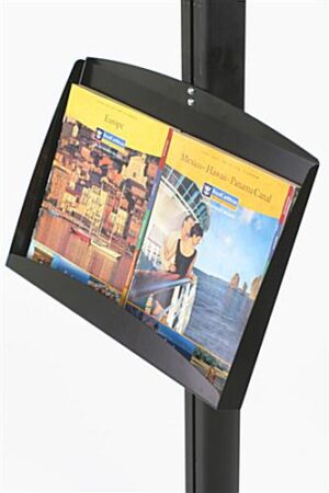 We supply the magazine holders with one 24″w x 36″h quick clip poster frame and one literature holder. The snap-open poster frame has a front loading feature for fast and easy graphic changes. The magazine shelf is ideal for placing and showcasing additional information. Each magazine tray is made from powder-coated metal to resist corrosion and abrasion. These magazine holders are ideal display stands for any business looking to showcase materials with supporting graphic images. And with a fully adjustable design, you can display your advertisements at an ideal height to catch customer attention. Simply slide accessories up or down the groove in the pole and tighten to secure the location.