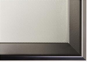 This type of snap frame, also called quick change signage, features a high-quality metal frame with a matte black finish for matching any indoor environment. A slim profile and concealed wall mount holes make these poster holders an ideal purchase at a low price. For convenience, each snap frame comes with wall mounting screws and anchors. These poster holders can also be mounted either vertically or horizontally, depending on the orientation of your artwork. Note: Please allow for a 0.5″ border around your entire poster, as this area will be covered by the frame edges.