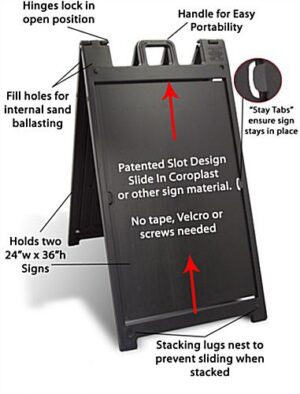 24 x 36 Sidewalk Sign for Posters, 2 Sided, Non-Glare Lenses, Fillable Base – Black