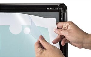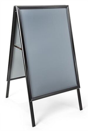 Place this portable sidewalk sign holder on the curb side for foot traffic to see! Position the sandwich board outside your shop or restaurant and load with (2) 24” x 36” posters. The double-sided sidewalk sign holder helps improve foot traffic into your establishment. Each sandwich board includes protective PVC lenses which secure beneath the snap-open edges. Intended for outdoor use, the aluminum frame makes an optimal option for the curb in front of your shop. Insert marketing posters on both sides of this sign holder for visibility from either direction!