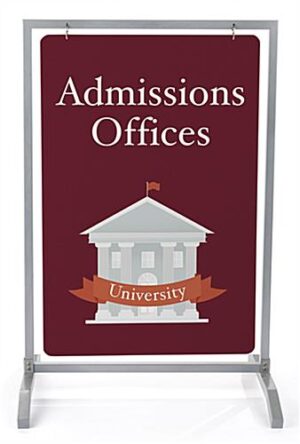 This 24×36 silver swinging sidewalk hanging frame is a durable for outdoor use. Each sign holder with a weighted t-base stands firm throughout windy conditions. Ring hooks attach a poster panel to the open swinging sidewalk hanging frame. Position the durable sign holder on the pavement outside of your business. Poster panels are sold separately to complete the sidewalk hanging frame. Place the sign holder curbside to attract attention and complete your advertising needs.