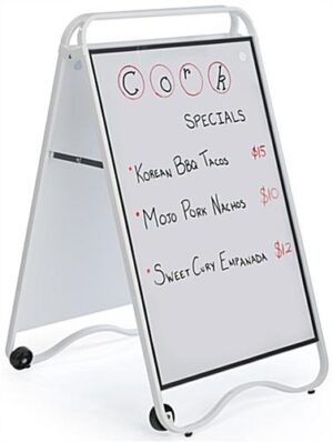 24 x 36 Write-On Board A-Frame w/ Wheels, Dry Erase, Double Sided, Clear Lens – White