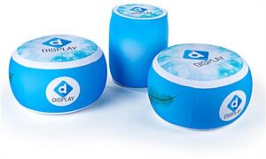 This custom inflatable event ottoman provides a contemporary seating option for your trade show lounge area. With a fully-branded fabric graphic slipcover, you can advertise your business while also providing a place for guests to relax. This lightweight inflatable event ottoman is totally portable and can be taken from one show to the next to create a fun, contemporary lounge seating area. Setup is quick and easy as well, thanks to an anti-deflation air valve. Easily mix with other blow-up furniture pieces to build and remix your own arrangements on-the-fly. This inflatable ottoman is a wonderfully unique advertising solution that adds visibility to your brand and comfortable seating to guests in one elegant package.