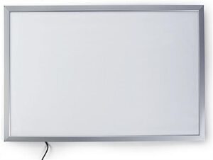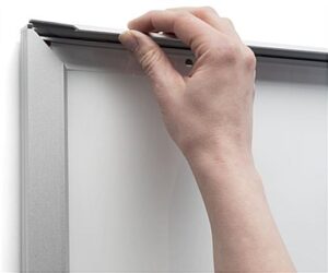 This silver illuminated snap frame is an eye catching wall fixture for a one sheet movie poster and guaranteed to gain customer exposure. It is built with energy efficient, edge-lit LED lighting that casts luminosity onto the back panel, creating an all over poster display glow. This wall mounting snap frame is ideal for movie prints in home or commercial theaters as well as for advertisements in malls, hotel lobbies and other high traffic areas. It is front loading, making it easy to pop open and insert new posters at any time. Included with this display fixture is a kit to hang the frame either horizontally or vertically and a 59” cord for flexibility in placement throughout a room. The edge-lit diode bulb technology is energy efficient, so all you need to worry about is which enticing graphic to use. This snap frame is ideal for any industry that wants to advertise products in large format while up in lights.
