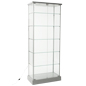 29″ Glass Display Case w/ 5 Shelves, Top Lights, Wheels, Hinged Door – Silver