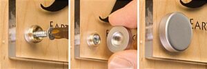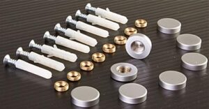 Sign fixings called sign holders, or fasteners are perfect to mount signs in an office, bank, hotel, or anywhere clients will be. Normally when a sign is mounted to a wall screws are left exposed, detracting from the sign. These sign fixings are specifically designed to enhance signage while covering unsightly screw heads. Fasteners have a diameter of 3/4″ and a depth of 3/8″. We sell sign fixings in sets of (8), allowing you to mount (2) signs with one set of hardware.