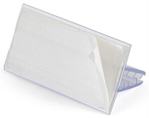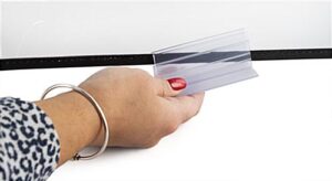 The desktop sneeze guard stabilizing clips come in a pack of 50 and help prevent your hygiene barrier from falling over in shared spaces such as offices, schools, libraries, conference rooms, and more. Our 3″ PET supports have easy peel-off adhesives to ensure that your protective shield will not tip while interacting with others. Reposition the desktop sneeze guard stabilizing clips anywhere along the hygiene barrier’s bottom to provide better security.