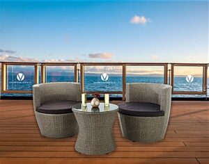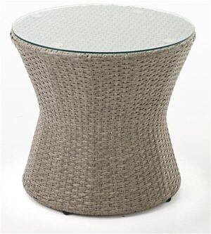 Our 3 piece wicker bistro set is a beautiful weather-resistant outdoor furniture option for hotels, coffee shops, bars, or home patio areas. The stylish seating group design nests together with ease, allowing you to reduce the overall surface area the chairs and table take up when not needed to be more efficient with your space. Each weather-resistant 3 piece wicker bistro set features a 2″ thick taupe cushion on the seats for added comfort. You can also remove the outdoor furniture polyester cushion covers via a zipper for easy machine washing between seasons! The table has overall dimensions of 24″ W x 23″ H and features a removable tempered glass top, allowing for easy cleaning after enjoying food and drinks. Each piece boasts a neutral taupe color and striated pattern giving it a more natural appearance to fit a broader range of styles and aesthetics. This sleek and stylish-looking seating group is a great spot for happy hour cocktails, coffee dates, or entertaining friends on your backyard patio. Our modern 3 piece wicker bistro set will bring the perfect blend of comfort and style to any business or home space you adore!