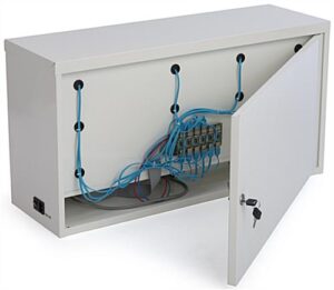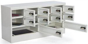 Complete with individual combo lock doors, multi-head cables, and charging indicator lights, this mobile device locker is a complete charging storage solution. Eight small compartments fit phones and small media players while two large sections offer plenty of space for tablets. Each device locker with programmable combo pad allows users to keep the same code or change to a new one whenever necessary. Open the storage solution doors to find a multi-head cable complete with adapters for micro-USB, lightning, or 30-pin connectors. An included set of keys allows the owner to open the back and front compartment locks so you never have to worry about forgetting your code. This device locker is great for letting people charge their phones or tablets in schools, stores, hotels, and more!