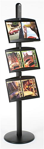 This literature display, magazine stand is 72′ high, an ideal height for grabbing customer attention in large and crowded venues. The magazine stand is made from durable aluminum with a heavy-duty base. This magazine stand, also known as a literature display, is built to last and withstand any busy environment. We supply the magazine stand with 3 literature trays. The literature tray has an open space with a width of 18″ for placing any printed materials. For places with limited floor spaces, this magazine stand will be ideal for you.