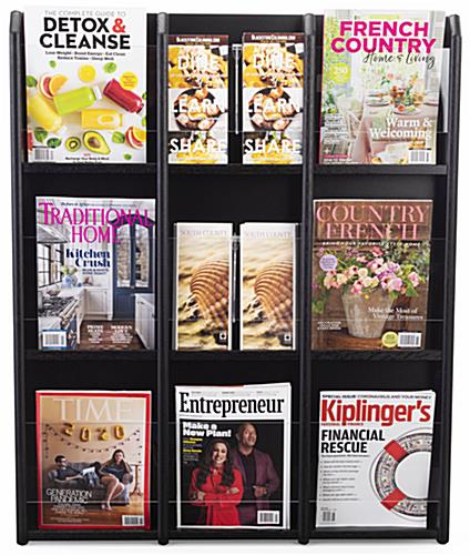 Black Finish Magazine Rack with 9 Full-Size Pockets
