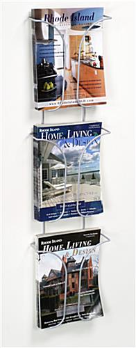 This 3 pocket magazine rack is an ideal way to display magazines and literature. This wall-mount display, magazine rack is made of durable wire with a light-gray finish to easily coordinate with any environment. For places with limited space, this magazine rack is an ideal literature display solution. There are 3 magazine pockets, and each pocket fits any 8-1/2″w x 11″h literature. This magazine rack is great for use in lobbies, waiting areas, and doctor offices. Keep your customers and patrons entertained with the reading materials while they wait.