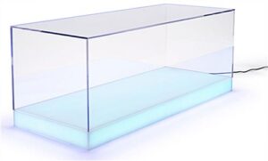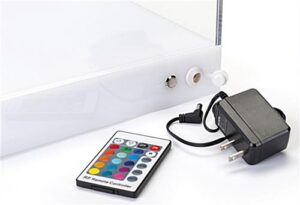 This lighted acrylic display case is an affordable and modern way to display your collectibles. The LED base can change between 16 different colors and 3 different lighting transitions, giving you a wide variety to best complement your items being showcased in the box. Each lighted acrylic display case comprises a remote control and a 5-foot charging cord to easily manage the settings of the illuminated box. Enhance your collectibles by bringing more attention to them with the extensive LED features that come with this clear cube. The see-through plastic cover sits securely on a notch around the lit-up base keeping the lid from moving or dirt from entering the box. This lighted acrylic display case will be the perfect addition to your retail outlet, educational or office setting.
