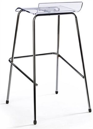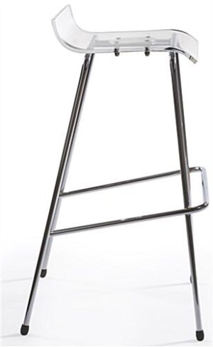This chrome bar stool is a contemporary seat for use in trade shows, restaurants, cafes, pubs, and modern cafes. Slim Metallic steel legs and frame make these chairs easily stackable, great for storage in a variety of environments. Each contemporary bar stool also features a clear acrylic seat with a small lip in the rear. Designed for both comfort and style, the pub chair frame is equipped with a wide foot rest. As an added convenience, this bar stool comes in sets of 4 for abundant configurations! Place all four acrylic and steel seats around a table, or pull them right up to a counter for a comfortable and modern seating area.