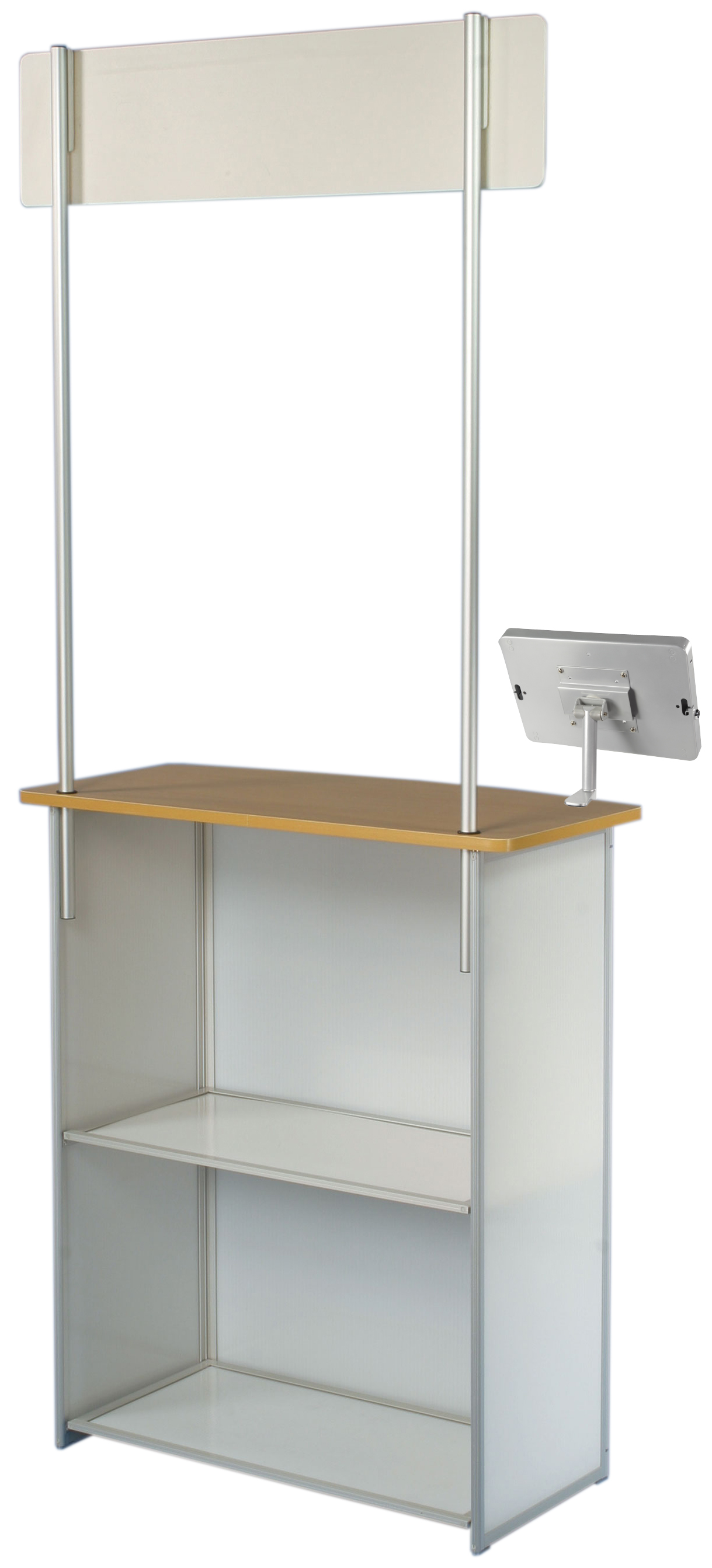 31″w Portable Counter w/ Header, Inner Shelf, Clamping iPad Enclosure – White