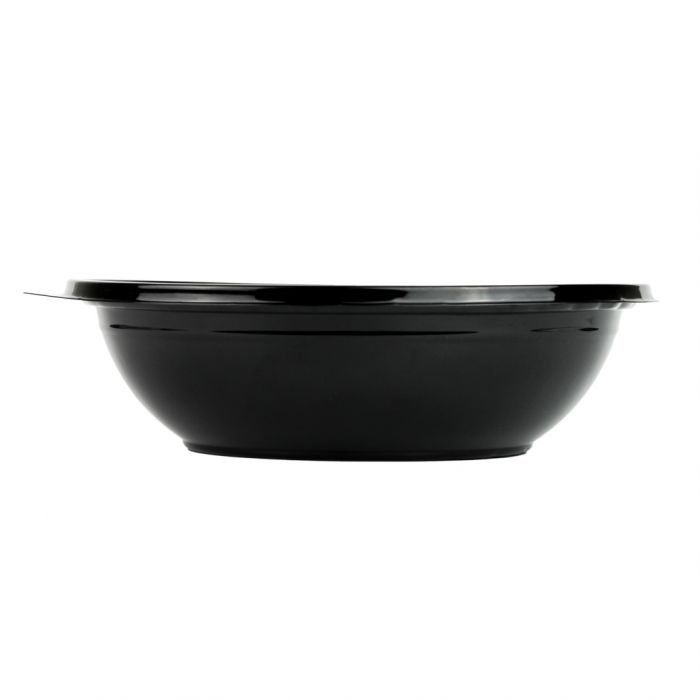 32 oz Black 8″ Premium PET Plastic Salad Bowl – 200/Case