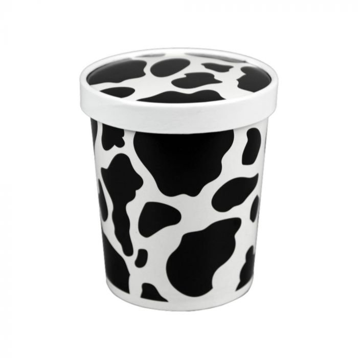 32 oz Dairy Print Paper Ice Cream Container with Paper Lid Combo – 1 case (250 set)