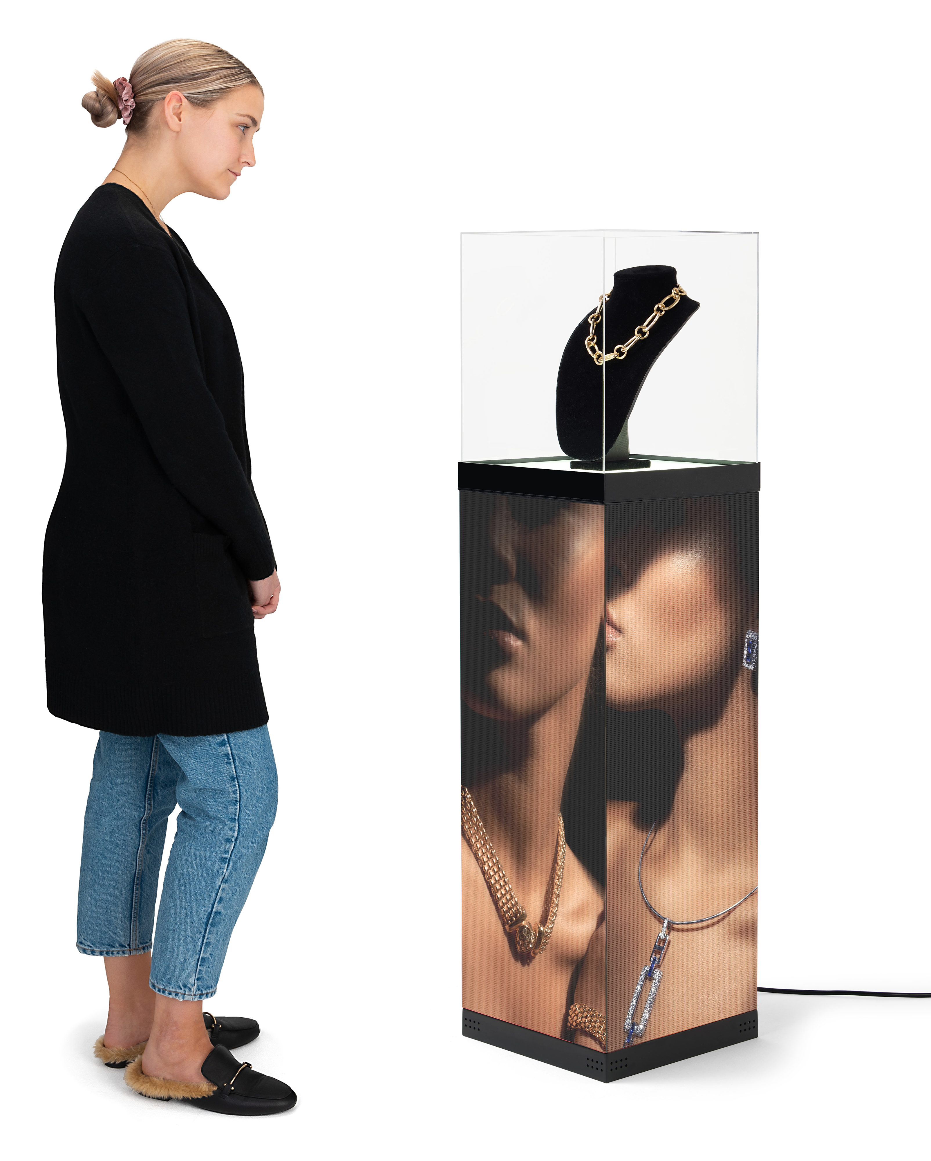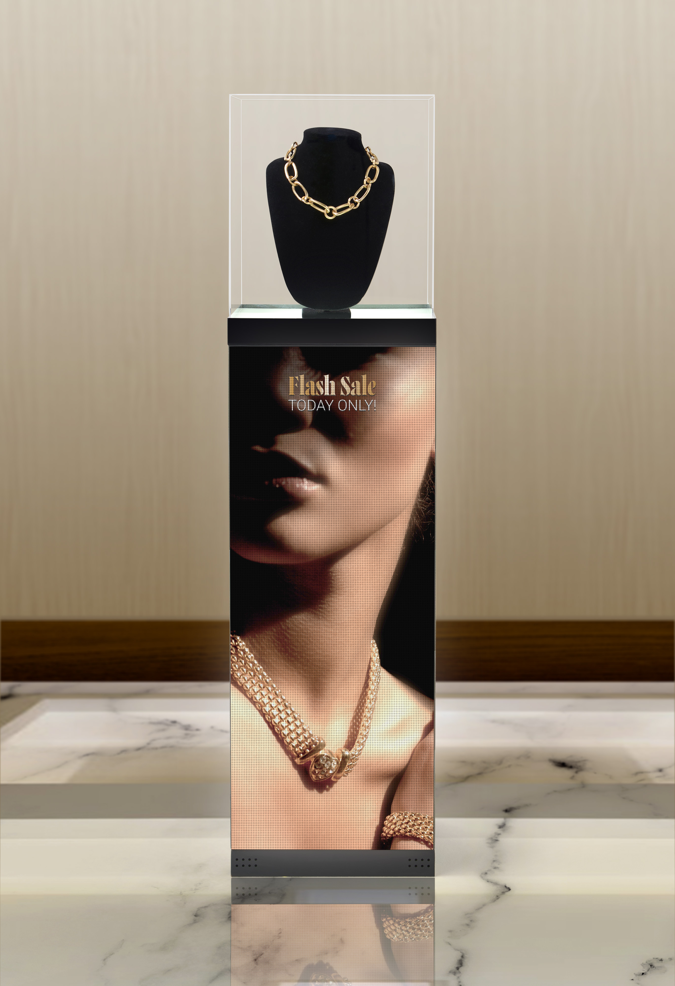 34″ dvLED Digital Pedestal Display Case with Illuminated Surface, NovaStar