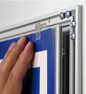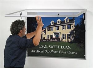 • Locking poster board holds large 36″ x 48″ signs for high visibility.