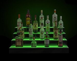 This LED illuminated bar shelving allows you to create a beautiful liquor display that is sure to catch the eye of your patrons. The lighted base offers a variety of hues and color changing modes to help set just the right ambiance. Easily control this 4-tier illuminated bar shelving with the included remote for on-the-fly adjustments. A rubber plug and an acrylic build help to protect from condensation and spills when accidents happen. The rechargeable lithium ion battery can operate for up to 12 hours on a single charge – plenty of time for the evening service. Create a one-of-a-kind display for your liquor bottles with the color changing steps of this bar shelving.