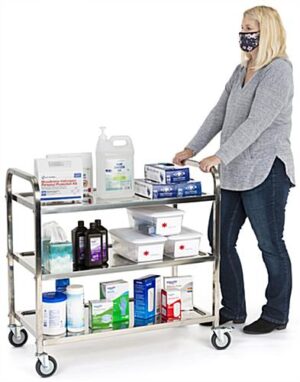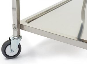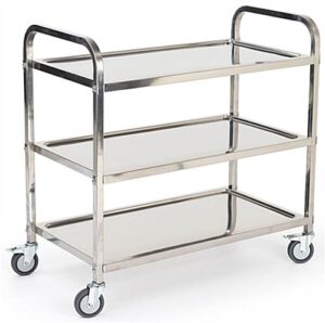 This 3 tier stainless steel utility cart is a convenient solution when you need to transport merchandise, equipment, or supplies. Our rolling metal trolley features ss201 grade metal, 2 locking & 2 non-locking wheels, and a weight capacity of 66 lbs per shelf. This 3 tier stainless steel utility cart allows you to provide transport services in commercial kitchens, medical facilities, hotels, and warehouse facilities. Available in with either two or three shelves, this metal rolling trolley is durable, resists oxidation, and is an essential and versatile addition to any establishment. Not only is this service pushcart ideal for the transportation of merchandise or supplies, but it also makes a great storage unit. This 3 tier stainless steel utility cart can be used to simplify your daily routines in a variety of commercial settings!